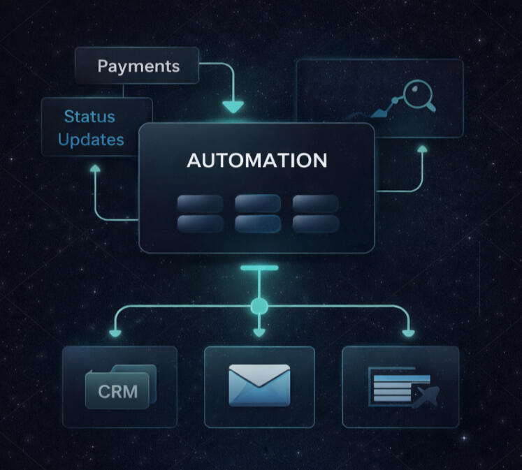 Behind-the-scenes automation that connects tools, processes, and transactions — syncing data and keeping operations running without manual work.
